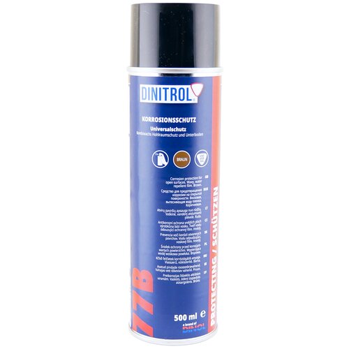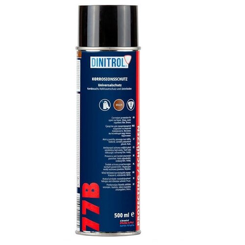 Антикоррозийный материал на восковой основе, после высыхания создает гладкую водоотталкивающую поверхность коричневого цвета.Создаваемый жидким воском Dinitrol 77B защитный слой противостоит механическим и химическим воздействиям на поверхность, предотвращая появление коррозии. Купить Динитрол 77B можно на нашем сайте в объеме 500 мл (аэрозоль).Антикор Динитрол 77 B. ИспользованиеПрименяется Dinitrol 77B для долговременной защиты от образования ржавчины различных металлических поверхностей автомобиля:- пол в салоне;- внутренности багажника;- стенки моторного отсека.Препарат после высыхания создает твердую пленку, обеспечивающую защиту от механического износа в процессе эксплуатации, при транспортировке и хранении металлических изделий. При этом стоит учесть, что образовавшаяся пленка имеет остаточную липкость и может пачкаться.DINITROL 77B содержит экологически приемлемые низкоароматические растворители, после испарения которых, остается толстый восковый налет коричневого цвета.Если требуется обработать деталь со следами коррозии, нужно дополнительно использовать преобразователь ржавчины Dinitrol RC800.Жидкий воск для авто Dinitrol 77 B. Способ примененияНаносить Dinitrol 77B нужно при температуре окружающей среды от 20°С, предварительно взболтав баллон.Обрабатываемая поверхность перед нанесением должна быть чистая и сухая. Распылять Dinitrol 77B следует с расстояния 20-30 см перекрестными слоями для создания цельной защитной пленки, предварительно взболтав баллон.Динитрол 77B. Технические данные:Цвет: коричневыйТип плёнки: восковаяПлотность при 23°С: 860 кг/мВязкость при 23°С: DIN 4 50 sСодержание сухого вещества: 50%Точка вспышки: 29°САроматических летучих соединений: < 0,5%Рекомендуемая толщина сухой пленки: 50 µmРекомендуемая толщина мокрой пленки 110 µmВремя пленкообразования: 30 мин.Адгезия при низких температурах: -30°СУдаляемость: Dinitrol 7225, уайт-спиритВоздействие к ЛКМ отсутствуетСтойкость к высоким температурам >105°ССтойкость к солевому туману 500 чПенетрирующие свойства, пленка 50 µm: > 40 мм