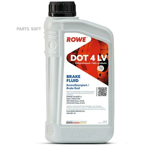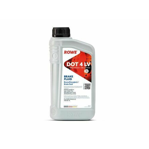 Тормозная жидкость ROWE HIGHTEC BRAKE FLUID DOT4LV(1л) SAE J1703/1704, FMVSS116, ISO4925 Class 3/4/6, JIS K2233 Class 3/4/6 25114001099