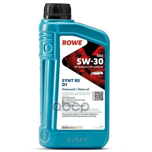ROWE Масло Моторное 5W30 Rowe 1Л Нс-Синтетик Hightec Synt Rs D1 Sn/Plus Rc Ilsac Gf-5