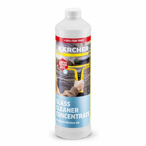 Концентрат для мойки стёкол karcher RM 500 в лимитированном объёме 0,75 л для очистки любых стеклянных и зеркальных поверхностей без образования полос и разводов. Идеально подходит для мойки вручную и с помощью специальных аппаратов.