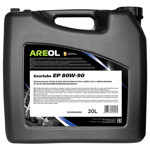 Areol Gearlube Ep 80w90 (20л) Трансм. Минерал. Масло Для Гипоидных Передач Api Gl-5, Mil-L-2105 D AREOL арт. 80W90AR093
