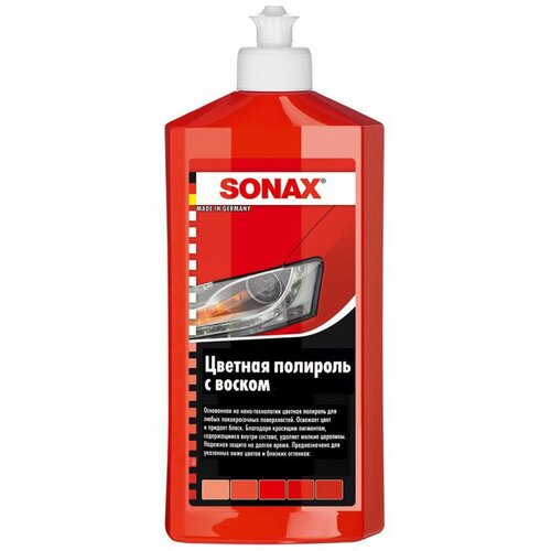 Автополироль красный с воском и водоотталкивающим эффектом объемом 500 мл. Изготовлен также с защитной технологией NanoPro, а это значит, что он не только полирует, но и защищает лако-красочное покрытие кузова вашего автомобиля. Красный автополироль SONAX сглаживает не только мелкие царапины, но и способен также затереть и сделать невидимыми более глубокие царапины на поверхности вашего автомобиля. Эффект блестящей поверхности и водоотталкивающее покрытие работает в течение нескольких месяцев. Полироли с воском SONAX одновременно полируют, очищают и защищают поверхность автомобиля.Способ примененияПосле мойки автомобиля необходимо нанести автополироль на поверхность автомобиля с помощью губки-апликатора и подождать пару минут. После этого аккуратно вотрите полироль в кузов автомобиля. Для этого вам понадобится салфетка из микрофибры.Рекомендации и противопоказанияНе стоит наносить полироль на стекла автомобиля, - для этого сущетвует отдельный полироль для стекол. Не наносите полироль на стеклянные фары, интерьер автомобиля и (важно!) камеру заднего вида. Желательно не держать полироль в сыром помещении с отрицательной температурой. Также уберегайте автополироль от детей и животных.