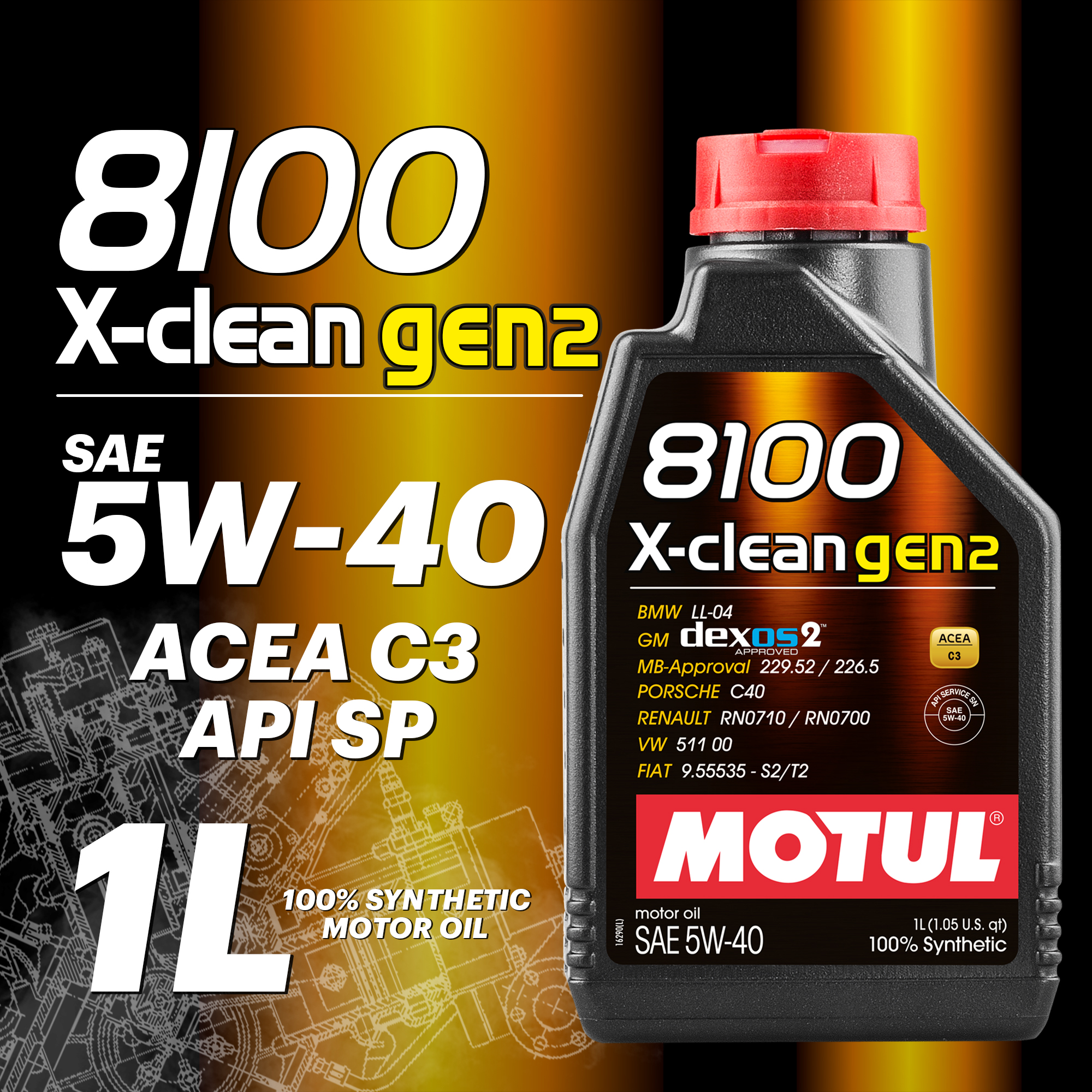 Масло моторное MOTUL 8100 X-clean GEN2 5W-40, 1л
