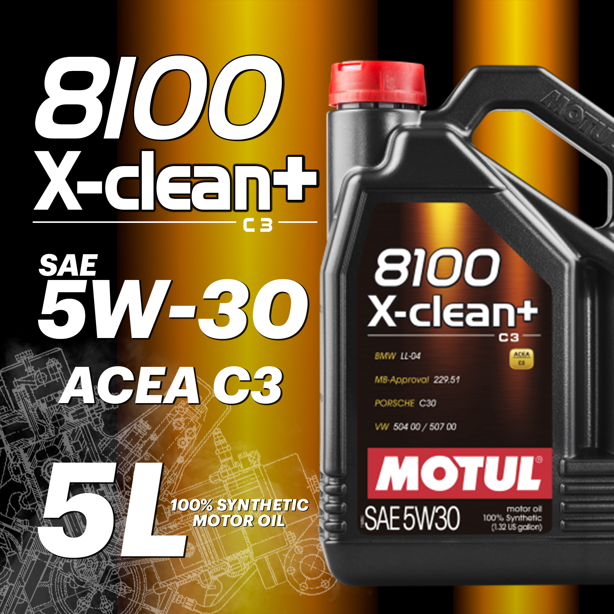 Высокотехнологичное 100% синтетическое моторное масло, специально разработанное для современных бензиновых и дизельных двигателей легковых автомобилей, отвечающих требованиям норм Euro 4, Euro 5 и Euro 6, и требующих использования в них масла с высокой вязкостью HTHS (более 3.5 мПас), сниженной сульфатной зольностью (0,8%), содержанием фосфора (0.07%-0.09%) и серы (0.3%) - «Mid SAPS». Совместимо с каталитическими нейтрализаторами и сажевыми фильтрами (DPF). Рекомендовано для применения в современных двигателях легковых автомобилей BMW, MERCEDES, PORSCHE и VAG (VW, AUDI, SEAT, SKODA). Может применяться в бензиновых и дизельных двигателях, требующих моторное масло стандарта ACEA С3. Перед использованием ознакомьтесь с руководством по эксплуатации.