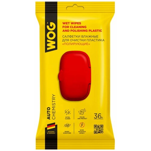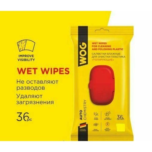 WOG WGC0661 Салфетки влажные для очистки, полировки и реставрации пластика салона антистатические (с клапаном) wog, 36 шт
