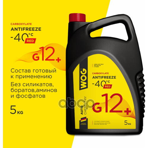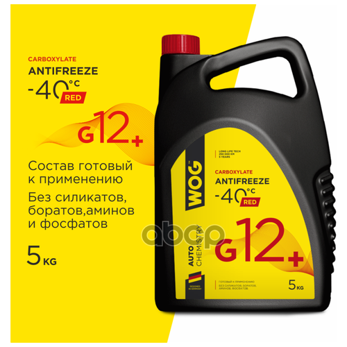 Антифриз G12+ (-40) Карбосиликатный Wog, 5кг. WOG арт. WGC0114