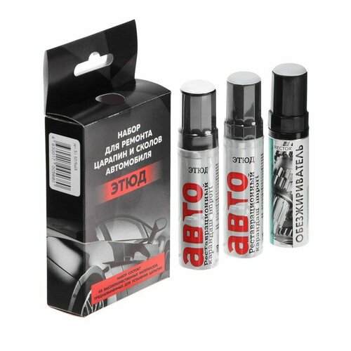 Мелкие повреждения, сколы, счёсы или царапины, могут легко устраняться самостоятельно, без обращения к специалистам на СТО. Набор для ремонта царапин и сколов автомобиля этюд – идеальный реставрационный комплект для устранения незначительных дефектов на лакокрасочном покрытии автомобилей. Тонкая кисточка позволяет аккуратно закрасить царапину или скол, не выходя за пределы повреждения. Правильно подобрать нужный оттенок эмали поможет оригинальный образец цвета на крышке реставрационного карандаша. Автомобильный бесцветный лак этюд 12 мл – это финальный защитный слой для автомобильных эмалей, защищает покрытие от химических и физических повреждений.