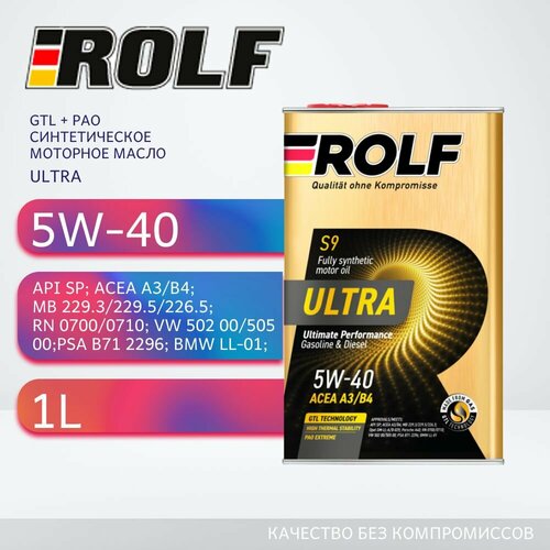 ROLF Масло Моторное Синтетическое Rolf Ultra Sae 5W-40 Acea A3/B4 Api Sp 4Л (Металл)