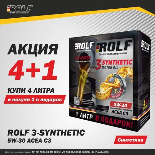 ROLF 3-synthetic SAE 5W-30 API SN ACEA C3 4л Акция 4+1 (322957)