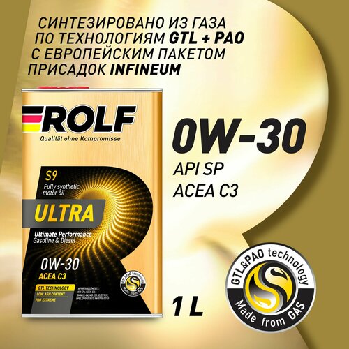 Масло моторное ROLF ULTRA SAE 0W-30, API SP, ACEA C3 Синтетическое 1 л