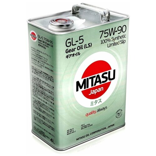 общие характеристики:Вид жидкости: API GL-5;Вязкость по SAE: 75w90;Состав: синтетическое;Класс по API: GL-5, MT-1;Объем канистры: 4 л;Назначение: дифференциалы;Допуски OEM: MACK GO-J, MIL-PRF-2105 E;Масло трансмиссионное Mitasu Gear Oil LSD 75w90MITASU GEAR OIL GL-5 75W-90 100% Synthetic - высококачественное полностью синтетическое трансмиссионное масло, изготовленное с применением серо- и фосфоросодержащих, а также противопенных присадок. Разработано для обеспечения высоких показателей при экстремальных нагрузках (EP type-extreme pressure).ПрименениеMITASU GEAR OIL GL-5 75W-90 100% Synthetic предназначено для использования в дифференциалах, мостах, раздаточных коробках и механизмах рулевого управления транспортных средств в условиях предельных нагрузок, где производителем оборудования рекомендовано применение трансмиссионного масла стандарта API GL-5, SAE 75W-90.ПреимуществаMITASU GEAR OIL GL-5 75W-90 100% Synthetic обеспечивает:• длительную защиту поверхностей трения деталей трансмиссии, работающих при высоких нагрузках;• стабильные эксплуатационные свойства при температурах до -45 °C;• увеличение интервала замены масла;• увеличение срока службы трансмиссии;• защиту от коррозии;Новейшие технологии MITASU OIL CORPORATION, Japan позволяют выпускаемым компанией трансмиссионным маслам отвечать и превосходить требования таких производителей автомобилей, как: TOYOTA, LEXUS, NISSAN, MAZDA, MITSUBISHI, HONDA, SUZUKI, SUBARU, DAIHATSU, HYUNDAI, KIA, FORD, MERCEDES-BENZ, VW, FIAT, AUDI, VOLVO, PORSCHE и других.Физико-химические свойстваКласс вязкости: 75W-90Плотность при 15°C: 0,8641Tемпература вспышки, °C: 211Температура застывания, °C: -42Цвет (по ASTM D-1500): 1,0Индекс вязкости: 210Кинематическая вязкость при 40°C (cSt): 70,30Кинематическая вязкость при 100°C (cSt): 14,04Спецификации и допуски• API GL-5;• API MT-1;• PG-2;• Limited Slip;• MACK GO-J;• MIL-PRF-2105E;