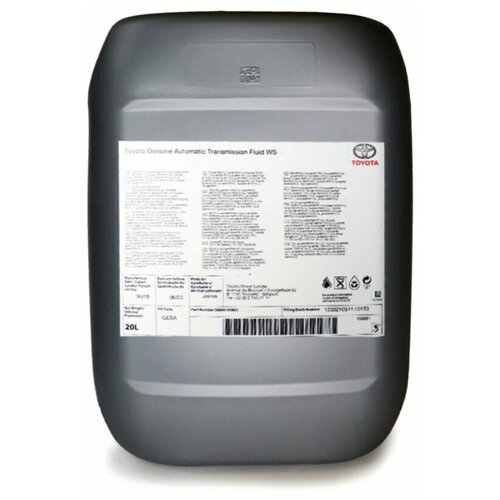 Код товара для заказа: 64463;Артикул: 08886-80803;Бренд: TOYOTA;характеристики.Вид жидкости: ATF WS;Состав: синтетическое;Объем канистры: 20 л;Назначение: автоматическая (AT);Допуски OEM: Toyota ATF WS;Масло трансмиссионное Toyota ATF WSЖидкость предназначена для автоматических трансмиссий и коробок передач с ручным переключением секвентального типа, когда предписано применение жидкостей для автоматических трансмиссий. Оригинальное трансмиссионное масло специально разработано для современных автомобилей ToyotaПреимущества• Гарантирует полную защиту автоматической трансмиссии двигателя даже в условиях повышенных скоростей и нагрузок;• Обеспечивает плавное и мягкое переключение передач в различных условиях эксплуатации;• Обладает отличными эксплуатационными показателями в условиях низких и высоких температур;• Отлично сочетается с различными металлами, сплавами и уплотнительными полимерными соединениями, применяемыми в автоматических трансмиссиях;• Обладает высокими антиокислительными и антикоррозийными свойствами, эффективно препятствует пенообразованию;• Содержит лучшие противоизносные присадки, увеличивающие срок службы трансмиссии;Физико-химические свойстваИндекс вязкости: 219Вязкость кинематическая при 40°С, мм²/с: 23,11Вязкость кинематическая при 100°С, мм²/с: 5,32Плотность при 15°C, г/см³: 0,865Температура застывания, °C: -51 Температура вспышки, °C: 210