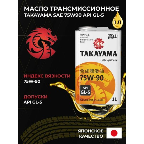 Масло трансмиссионное полностью синтетическое Takayama 75W-90 предназначено для высоконагруженных механических трансмиссий, приводов и редукторов с гипоидным зацеплением, где необходимо применение смазочного материала класса API GL 5. Обеспечивает высокую степень защиты от износа, оптимальную защиту от нагрузок давления. Снижает шумы при работе трансмиссии.