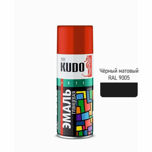 Аэрозольная краска эмаль KUDO универсальная черная матовая RAL 9005, 520 мл