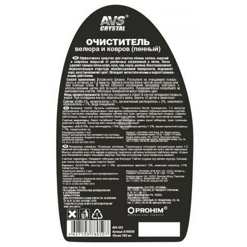 Очиститель велюра и ковров avs avk-020 (500 мл) (триггер) Avs A78050S.