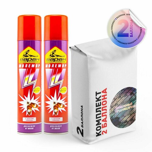 Набор дихлофос Варан Молемор, от моли, с запахом лаванды (2 шт по 180 мл) - 1 уп