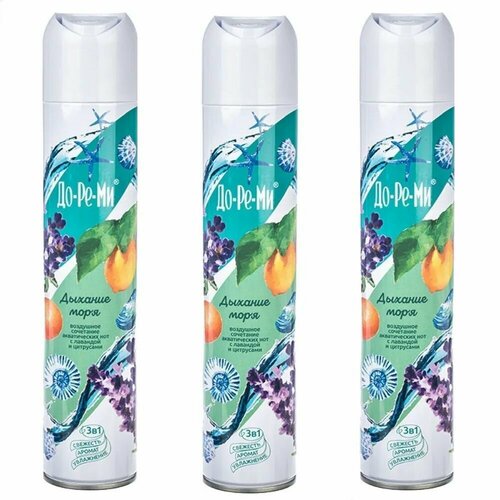 Освежители воздуха До-Ре-Ми – это неповторимые запахи трав, цветов, ягод, моря и фруктов, надолго сохраняющие атмосферу свежести, чистоты и комфорта. Специально подобранный состав компонентов позволяет легко устранить неприятные запахи, сохраняя естественную свежесть.Освежитель воздуха До-Ре-Ми Дыхание моря - воздушное сочетание акватических нот с лавандой и цитрусами.Освежитель воздуха До-Ре-Ми Дыхание моря устраняет неприятные запахи. Дарит свежесть и наполняет воздух неповторимыми нежными ароматами. Создаёт атмосферу комфорта и уюта.