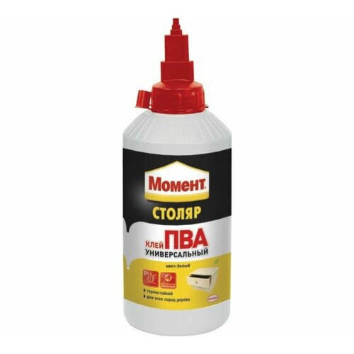 Клей момент-1 – это контактный, быстросохнущий клей из серии универсальных. Обладает высокой прочностью склеивания, повышенным уровнем теплостойкости, а также устойчив к воздействию воды, щелочной и кислотной среды. Может использоваться при комбинационном склеивании любых пород дерева, жесткого поливинилхлорида, металла, а также изделий из кожи, войлока, резины, пробки, декоративно-слоистых пластиков, стекла, керамики, фарфора. He пригоден для склеивания посуды, контактирующей с пищей. Удобен при транспортировке за счет герметично закрывающейся банки, незаменим в хозяйстве и при проведении ремонтных работ любого уровня сложности. Применение: Склеиваемые поверхности зачистить шкуркой и обезжирить бензином или ацетоном. Нанести клей тонким слоем на обе поверхности, выдержать 15-20 минут и сильно прижать на несколько секунд. Решающее значение имеет сила, а не продолжительность давления. Изделием можно пользоваться через 24 часа. Хранить при температуре от минус 20 °C до плюс 30 °C. Фасовка: 750 г.
