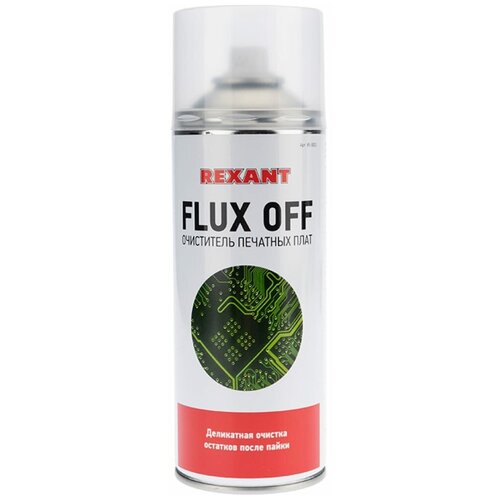 FLUX OFF REXANT — сбалансированная смесь растворителей, быстро и надежно удаляющая флюс и прочие загрязнения после пайки. Флюкс-офф удаляет масла, смазки, битумы, воски и другие нефтяные загрязнения. После испарения средство не оставляет следов на обрабатываемых поверхностях. Применение: Превосходное средство для эффективной очистки печатных плат и электронных компонентов. Средство с успехом применяется при производстве и ремонте радиоэлектронной аппаратуры. Подготавливает поверхность к нанесению защитных лаков и улучшает их адгезию. Внимание! Средство весьма активно. Может воздействовать на некоторые пластмассы и окрашенные поверхности. В сомнительных случаях испытайте на небольшом участке. Рекомендации: Баллон снабжен удлинительной трубкой для распыления в труднодоступных местах. Использование зубной щетки, жесткой кисти или ветоши помогает добиться наилучшего результата. Предупреждение: При использовании препарата рекомендуется обеспечить хорошую вентиляцию. Продукт является огнеопасным, поэтому следует исключить применение препарата вблизи источников открытого огня, раскаленных предметов и оборудования под напряжением. Перед включением оборудования убедитесь, что FLUX OFF полностью испарился. Рабочие температуры: -40.+200 °C Диэлектрическая проницаемость: 5,0-8,0 ?'