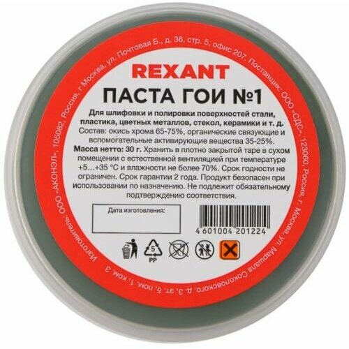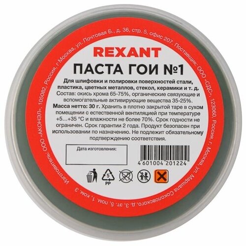 Паста ГОИ полировальная Rexant № 1, 30 г