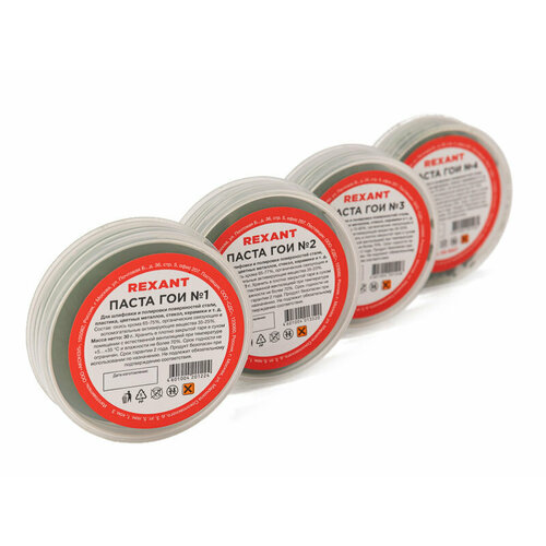 Полировальная паста ГОИ № 1 REXANT для финишной шлифовки и полировки поверхностей, банка 30 грамм