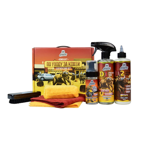 Комплект для ухода за кожей LERATON предназначен для очищения и ухода за кожаными деталями салона автомобиля. Способ применения Произвести очищение с помощью очистителя для кожи D1: Равномерно нанести на поверхность с помощью дозатора или распылителя, далее очистить поверхность используя мягкую микрофибровую тряпку или мягкую щетку. При необходимости снять остатки средства чистой микрофибровой тряпкой. Процедуру можно повторить при необходимости. Завершить процедуру с помощью крема-кондиционера D2: равномерно распределить небольшое количество средства на поверхности используя губку. Выждать 5-10 минут и аккуратно располировать с помощью микрофибровой тряпочки. При необходимости очиститель D1 можно вспенить с помощью пенообразователя. Особенности В наборе предусмотрены все средства, помогающие сохранить внешний вид кожаных элементов вашего автомобиля, продлив срок их службы и сохранив изначальный внешний вид. Меры предосторожности Беречь от детей. Избегать попадания раствора на слизистые оболочки. При попадании сразу обильно промойте водой, а при острой реакции сразу же обратитесь к специалисту за медицинской помощью. Условия хранения Хранить при температуре от 0°С до 35°С. Избегать повышенной влажности или продолжительного попадания прямых солнечных лучей. Состав В набор входит: Очиститель для кожи D1 LERATON (Н-ПАВ <,5%, амф. ПАВ <,5%, эмульгаторы, смачиватель, вода) Крем-кондиционер для кожи D2 LERATON (алифатические углеводороды 15-30%, масла, эмульгатор, отдушка, вода) Щетка для чистки кожи LERATON Прямоугольный аппликатор LERATON Бутылочка-пенообразователь LERATON Микрофибровая салфетка 40х40 см (2 шт) LERATON Срок годности 36 месяцев с даты изготовления. Артикул: 440000
