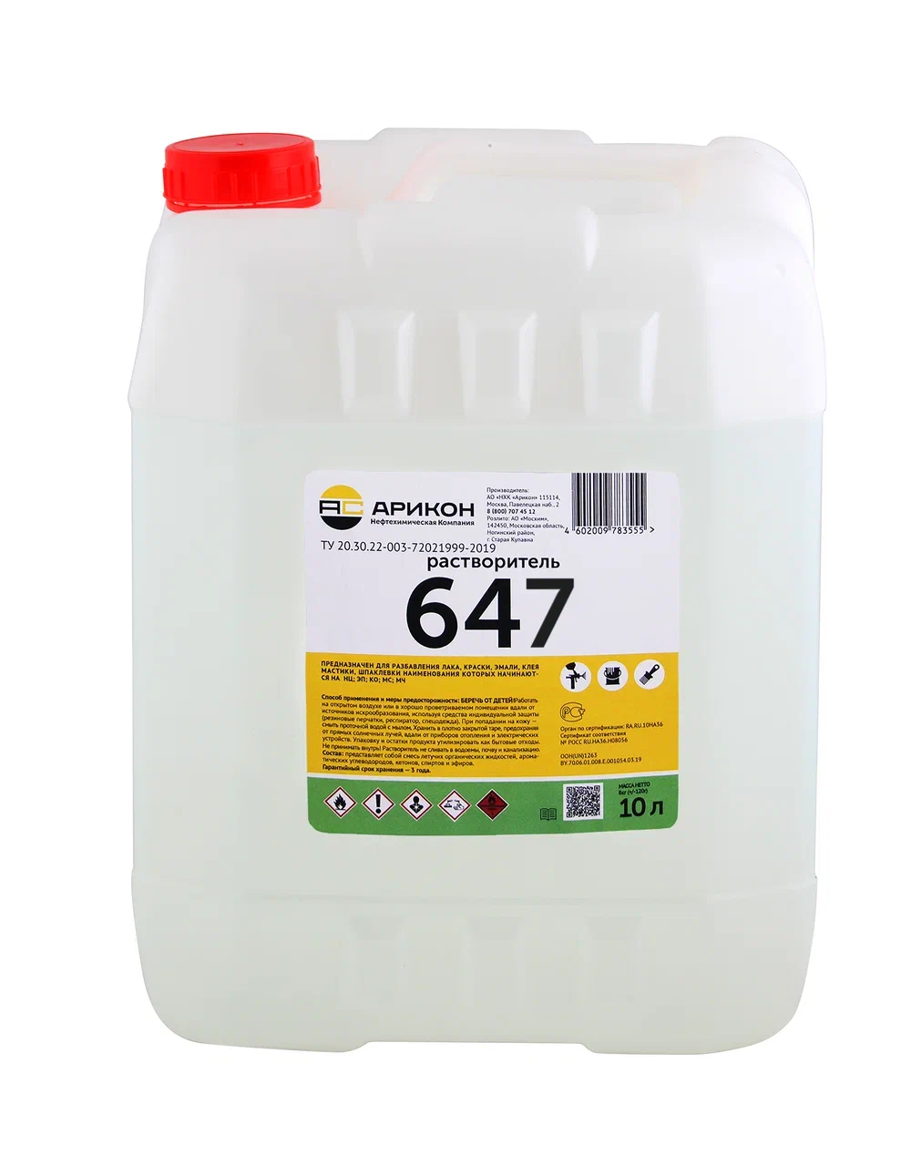 Растворитель 647 ТУ 20.30.22-003-72021999-2019. Растворитель для автомобильных лаков, красок, шпаклевок, грунтовок на основе НЦ (нитроцеллюлозные), КО (кремнийорганические), ЭП (эпоксидные) материалов.Предназначен для разбавления автомобильных (НЦ) нитроэмалей и нитролаков.Растворитель 647 активно применяется в автомобильной промышленности для:- разбавления загустевшей краски, лаков, грунтовок, шпаклевок- удаления пятен с кузова и деталей автомобиля от органических веществ.Отлично подходит для разбавления нитрокраски используемой для защиты от внешних воздействий на пластиковых, деревянных и металлических поверхностях.Используется для промывания и очистки:- лакокрасочных инструментов: кистей, валиков, емкостей и пр.- лакокрасочного технического оборудования: краскопульта, сопла, емкостей для краски и т.д.При применении краскопульта эмаль / лак / грунтовку разбавлять в зависимости от диаметра сопла и планируемой толщины пленки покрытия, согласно рекомендации производителя ЛКМ.