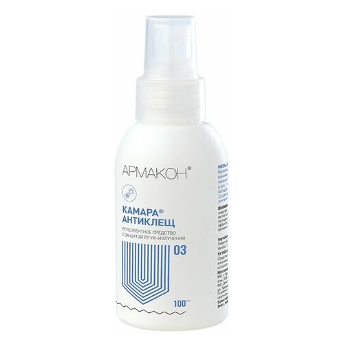 Спрей для кожи защитный, 100 мл, армакон камара антиклещ, от клещей, комаров, москитов, слепней, 1202.Продается набором по (4 шт.)Защищает от нападений клещей и кровососущих насекомых, таких как комары, мокрецы, москиты, мошки, слепни, блохи и иксодовые клещи (переносчиков возбудителей клещевого энцефалита и болезни Лайма).• Спрей-репеллент для защиты от нападений членистоногих - иксодовых клещей (переносчиков возбудителей клещевого энцефалита и болезни Лайма) и кровососущих насекомых (комаров, мокрецов, москитов, мошки, слепней, блох).• Содержит ванилин, отпугивающий мошку.• Средство высшей категории эффективности. Время защитного действия: при нанесении на кожу — более 4 ч; при на несении на одежду — до 30 суток от насекомых и до 5 суток от иксодовых клещей (при хранении в полиэтиленовом пакете).• Эффективность подтверждена в соответствии с Р 4.2.2643-2010 ниидезинфектологии Роспотребнадзора.• В состав добавлены смягчающие компоненты.• Не содержит силиконов, красителей, парабенов.• Соответствует требованиям «Единых санитарно-эпидемиологических и гигиенических требований к товарам, подлежащим санитарно-эпидемиологическому надзору (контролю)».• Производится по ТУ 9392-013-99195003-2010.Способ применения: от насекомых: распылить средство на ладонь и нанести, не втирая, на открытые участки тела.От клещей: тщательно обработать одежду до лёгкого увлажнения (особенно в местах возможного проникновения клещей). Распылить средство на одежду на открытом воздухе с расстояния 20–25 см, после обработки просушить в течение 1 ч.