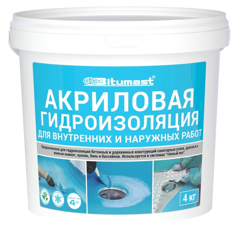 Гидроизоляция акриловая BITUMAST 4 л