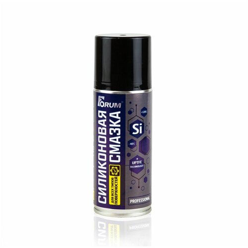 Силиконовая смазка FORUM, аэрозольВысокоэффективная Силиконовая смазка-спрей FORUM® в аэрозольном баллоне предназначена для обработки деталей из пластика, резины и металла. Подходит для обслуживания автомобилей, бытовых нужд, использования в промышленности.Покрывает площадь поверхности большую, чем другие аэрозольные смазки на основе силикона. Образует прозрачную пленку без запаха с отличными смазывающими, разделительными, антистатическими, защитными и водоотталкивающими свойствами.Предотвращает примерзание и деформацию резиновых уплотнителей дверей, капота и багажника, продлевает срок их службы. Устраняет скрип дверных петель, снижает вероятность заклинивания тросов, приводов, замков. Повышает диэлектрические свойства изоляции высоковольтных проводов, предотвращает утечки тока, приводящие к перебоям в работе двигателя и затрудненному пуску.Смазка не смывается водой и сохраняет свои свойства в диапазоне температур от -40°С до +320°С.