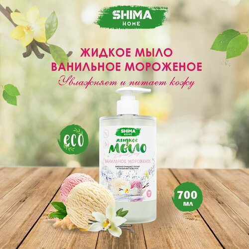 Жидкое мыло LIQUID SOAP с ароматом Ванильного Мороженого от бренда SHIMA 700 мл - отличный вариант надолго обеспечить семью ароматным и хорошо пенящимся средством для гигиенической и санитарной обработки кожи рук и тела. Увлажняющее мыло содержит натуральные растительные биоразлагаемые компоненты, имеет PH - нейтральную формулу. Жидкое мыло соответствует ТР ТС «О безопасности парфюмерно - косметической продукции». Гипоаллергенное органическое средство образует мягкую пенку, которая легко смывается водой. Продукция предназначена для ежедневного использования в быту: в ванной, на кухне и в бане, офисе, сфере услуг, на производстве. Средство для ухода без красителей и отдушки бережно и эффективно удаляет загрязнения, обеспечивает защиту кожи рук, не вызывая сухости и раздражения. Мыло подходит для автодозатора (пенного диспенсера) (развести с водой 1:1).