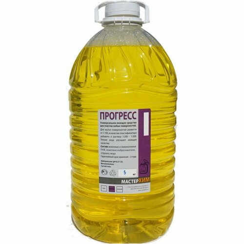 Универсальное моющее средство мастерхим прогресс 5 кг ПЭТ 037НП5ПЭТ подходит для мытья пищевого оборудования, а также тары, посуды, инвентаря из любых материалов, очистки любых твердых поверхностей от грязевых и жировых пятен. Средство pH нейтрально. Рекомендовано к применению на предприятиях пищевой промышленности, медицинских, детских образовательных учреждениях, населением в быту.