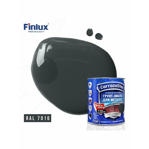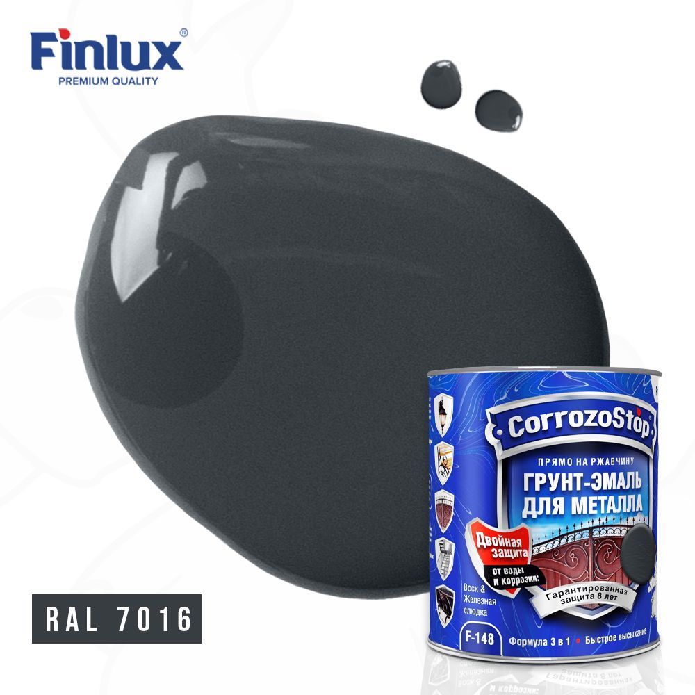 Универсальная грунт-эмаль 3в1 по металлу и ржавчине Finlux F-148, глянцевая, ral 7016, 0,75 л