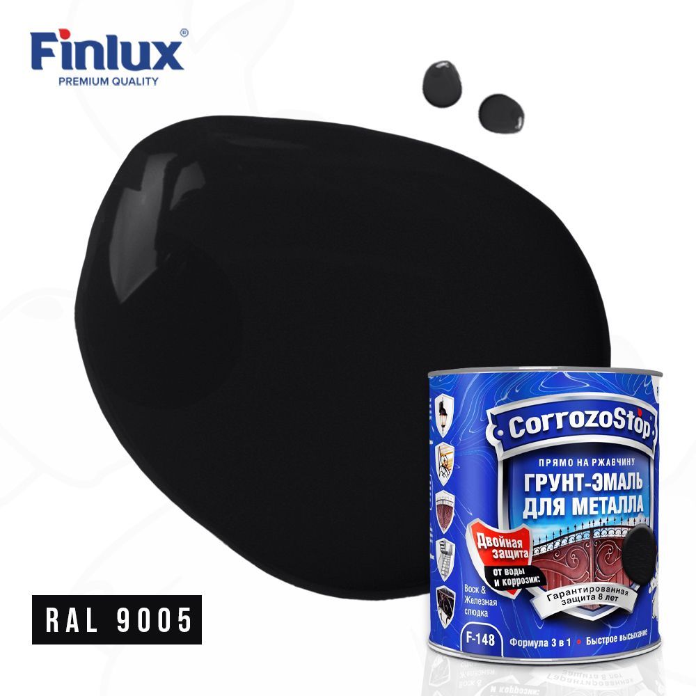 Универсальная грунт-эмаль 3в1 по металлу и ржавчине Finlux F-148, глянцевая, ral 9005, 0,75 л