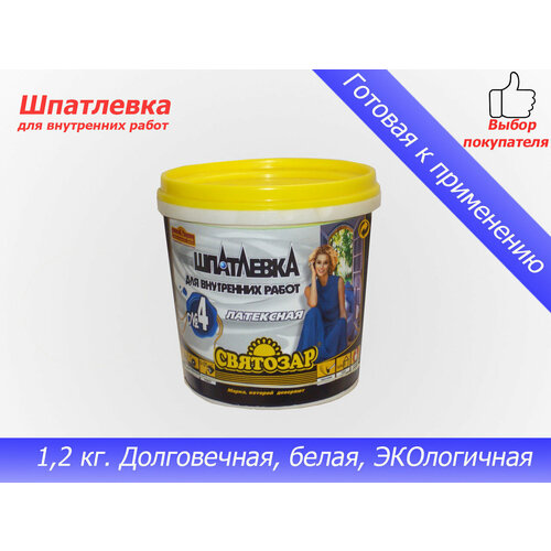 Шпатлевка (шпаклевка ) для стен и потолков акриловая для выравнивания любых поверхностей, заделки трещин, готовая, универсальная 1,2 кг Finlux Святозар 4Универсальная белая шпатлевка (шпаклевка) для интерьерных работ влагостойкая, 1,2 кг - это оригинальный сертифицированный шпатлевочный состав от известного российского производителя 1-го Лакокрасочного завода.Служит для выравнивания, заделки неровностей, трещин и щелей м на бетонных, кирпичных, оштукатуренных и других видах минеральных поверхностей .Отлично шлифуется . Обладает отличной влагостойкостью, Обладает незначительной усадкой, что делает возможным заделку неровностей глубиной до 3 мм за один прогон; Имеет хорошую адгезию к бетону, кирпичу, штукатурке, стеклу и др.; Дает прочную и гладкую матовую поверхность; Может использоваться как финишная; Не мелит. Отлично колеруется.Наша лучшая акриловая латексная шпатлевка .Торговая марка Finlux - Покрасит даже Лось! - производиться на финских и японских полимерах с 1989 года, на экспорт. Рекомендуем использовать с нашей супер - грунтовкой святозар 95. Расход -1 -12. кг на кв.м.Нашу шпатлевку Finlux Святозар 4 часто ищут как:Шпаклевки по штукатурке;Гипсовые шпаклевки;Шпаклевки по гипсокартону;Шпатлевка для стен;Полимерные шпаклевки ;Акриловые шпаклевки ;Фасадные шпаклевки;Шпаклевки для внутренних работ ;Латексные шпаклевки;шпатлевка;шпатлевка стен;акриловая шпатлевка;шпатлевка стен под покраску;шпатлевка под покраску;шпатлевка потолка;шпатлевка под обои;шпатлевка белая;шпатлевка универсальная;шпатлевка латексная;шпатлевка внутренняя;шпатлевка стен под обои;шпаклевка;шпаклевка стен;шпаклевка акриловая