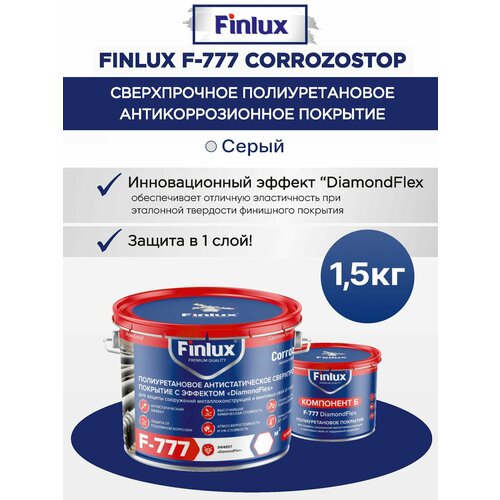 Двухкомпонентная полуглянцевая грунт-эмаль Finlux F-777 состоит из полиуретанового связующего и армирующих волокон, которые формируют сверхпрочное защитное покрытие с высокой механической, абразивной и химической стойкостью, обеспечивая антикоррозионную защиту металлов от агрессивных жидких сред и температурных перепадов. Выпускается в 5-ти базовых цветах с термостойкостью до +120°С. Предназначена для окрашивания и долговременной коррозионной и абразивной защиты металлов, работающих при температурах от -60°С до +120°С и эксплуатируемых в условиях всех климатических зон, включая в условиях агрессивной промышленной атмосферы. Применяется как надёжное покрытие от: ударов, абразивных и механических повреждений, различных реагентов, масел и бензина, в том числе разбавленных растворов кислот и щелочей, активных и пассивных коррозионных процессов (почвенная коррозия). Используется в качестве самостоятельного покрытия или в комплексе с грунтовкой Finlux F-296, что обеспечивает возможность увеличения долговечности комплексного покрытия (не менее 30-ти лет). Перед окраской металл необходимо очистить от остатков старого лакокрасочного покрытия, жира, масел, коррозии и грязи, замасленные поверхности следует обезжирить. Перед нанесением компонент А перемешать низкооборотной дрелью с лопастной мешалкой в течение 2 ÷ 3 минут до образования однородной консистенции. Затем в ведро с компонентом А добавить полностью компонент Б и получаемую смесь повторно перемешать в течение 3 ÷ 5 минут, избегая непромесов возле дна и стенок. Приготовленную смесь нанести в 1 ÷ 2 слоя с помощью мини валика или плоской кисти при температуре воздуха от +10°С до +25°С с влажностью до 80%. Для исключения конденсации влаги, температура окрашиваемой поверхности должна быть на 3°С выше точки росы. Все операции по смешиванию и нанесению смеси необходимо выполнить за 90-110 минут (время выработки готовой смеси)! Для получения наилучших результатов рекомендуется 2-х слойное нанесение с интервалом межслойной сушки 2 часа при температуре (20±2)°С. В этом случае необходимо приобретение 2-го комплекта для соблюдения временных параметров нанесения и сушки покрытия. На объектах со сложной геометрией рекомендуем заранее продумать план окрасочных работ. Время сушки «до отлипа» финишного слоя при Т= +20°С - 4 часа, полный набор прочности в течение 7 суток. Труднодоступные места примыканий удобнее оформить кистью. Для равномерного распределения смеси рекомендуется условно разделить окрашиваемую площадь на участки.Теоретический расход: 400 г/м² для слоя 50-60 мкм сухого покрытия.