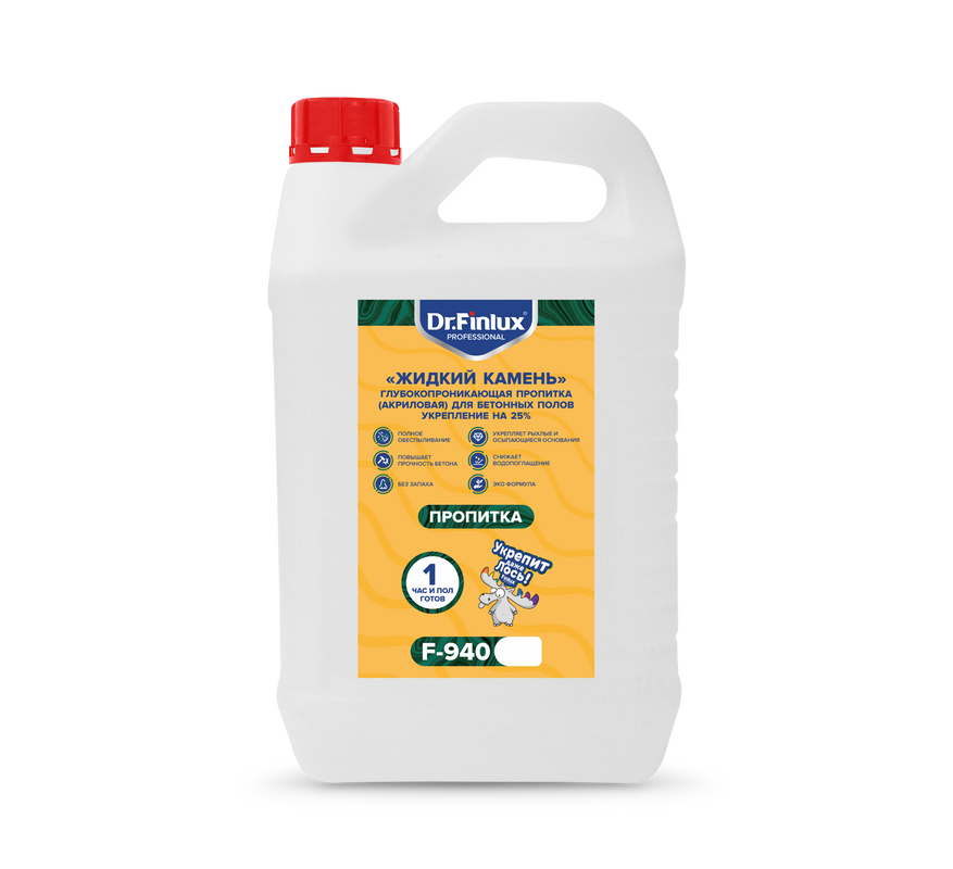 Укрепляющая и обеспыливающая пропитка Dr. Finlux F-940 «Жидкий камень» для бетона 25 кв.м.