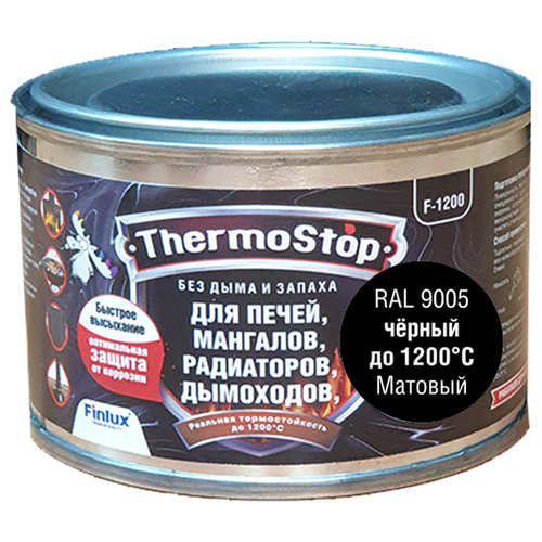 Грунт-эмаль Finlux F-1200, краска по металлу антикоррозийная до +1200C, матовое покрытие, Черный, 0,25 кг, 1000 С