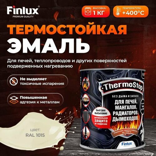 Краска, Грунт-Эмаль Finlux F-1200 до +1200°C Антикоррозионная, Быстросохнущая, Кремнийорганическая, Матовое покрытие, ral 1015, 1 кг, 400 С
