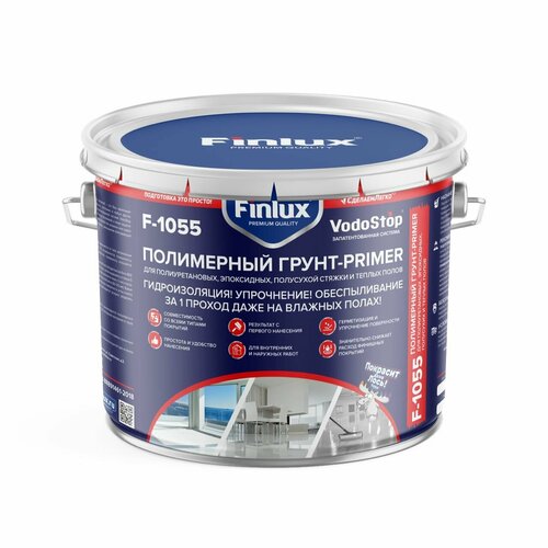 Грунт праймер для пола. Превосходно для полиуретановых и эпоксидных полов, полусухих стяжек и теплых полов, 20 кв. м полимерный универсальный Finlux F-1055 с эффектом VODOSTOP