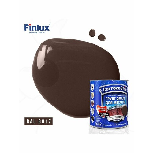 Универсальная грунт-эмаль 3в1 по металлу и ржавчине Finlux F-148, глянцевая, ral 8017, 0,5 л