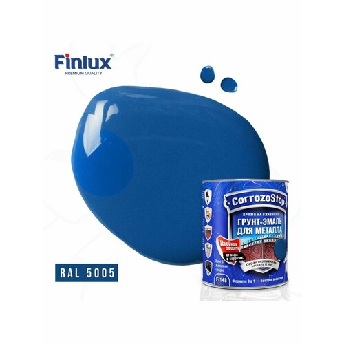 Универсальная грунт-эмаль 3в1 по металлу и ржавчине Finlux F-148, глянцевая, Ral-5005, 5л