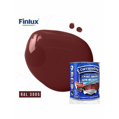 Универсальная грунт-эмаль 3в1 по металлу и ржавчине Finlux F-148, глянцевая, Ral-3005, 5л