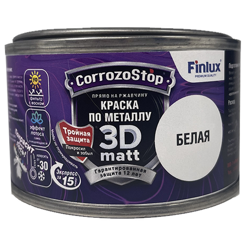 Антикоррозионная грунт-эмаль по металлу и ржавчине Finlux F-115, глубокоматовая, Ral 9016, 0,25л