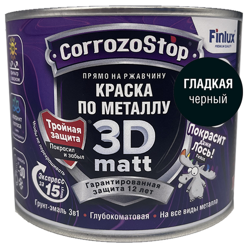 Антикоррозионная термостойкая грунт-эмаль Finlux F-115 Gold Ral-9005 (Черный), 0,25л