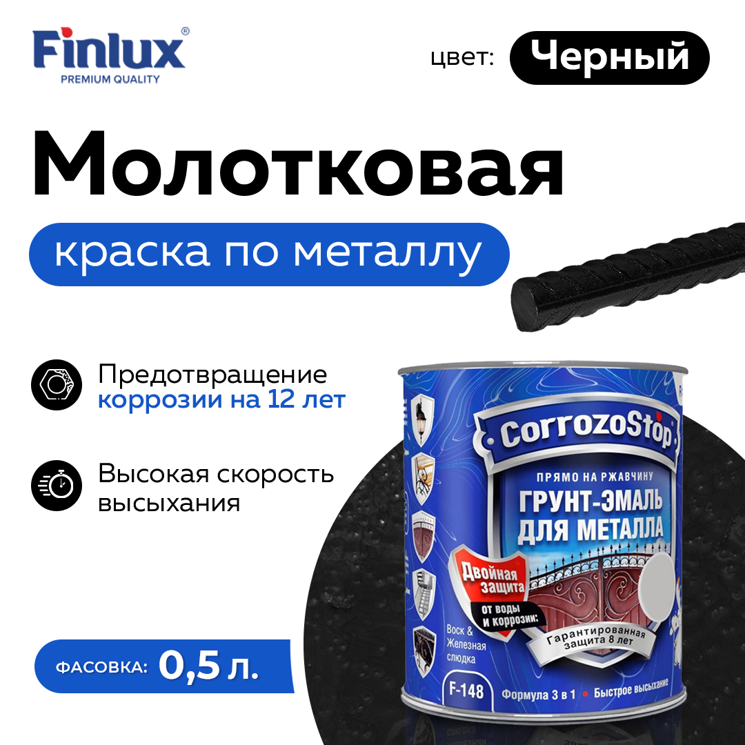 Грунт-эмаль Finlux F-148 Gold по ржавчине 3 в 1, краска по металлу, глянцевое покрытие, 0.5 кг, цвет Черный