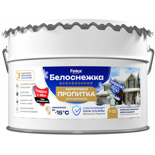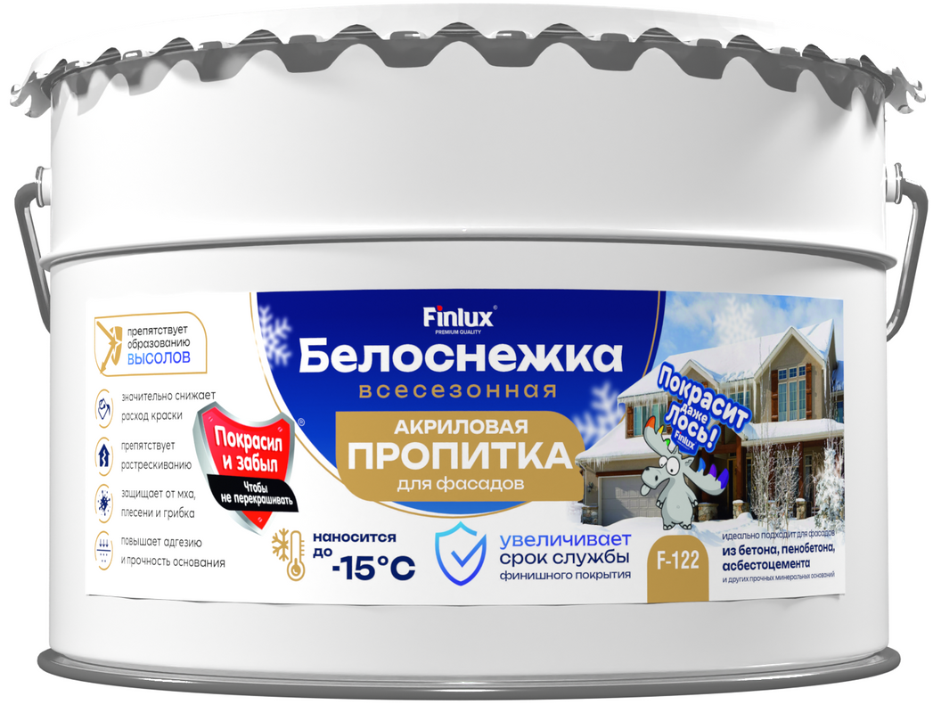 Всесезонная атмосферостойкая акриловая пропитка для фасадных работ - F-122 Белоснежка, 10 кг