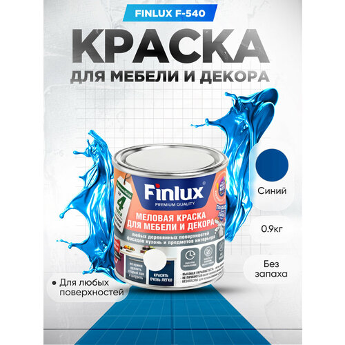 Краска для мебели и декора любых деревянных поверхностей, кухонь и предметов интерьера Finlux F-540-Синий-0,9 кг