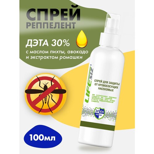 LifeSIZ, элен спрей от комаров и клещей; спрей от комаров и клещей для одежды 100 мл.