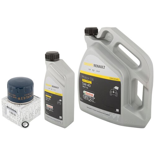 Оригинальный набор для технического обслуживания автомобилей Renault Kaptur, Duster 2,0 F4R. В состав набора входит все, что необходимо для замены масла на вашем Renault:- Моторное масло Renault Castrol RN-Spec 5W-40 RN 0710 (5 л 7711943691- Моторное масло Renault Castrol RN-Spec 5W-40 RN 0710 (1 л 7711943689- Фильтр масляный оригинальный Renault 8200768913- Уплотнительное кольцо сливной пробки поддона двигателя.- Подробная инструкция по самостоятельной замене масла в двигателе.Удобно - все детали приходят одновременно в ближайший к Вам пункт выдачи.Выгодно – комплектом дешевле.Проверено – все запчасти из комплекта мы опробовали на собственных сервисных станциях в Москве и Петербурге. Гарантируем качество и идеальную совместимость с вашим автомобилем!